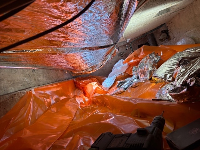 Vocht is uw grootste vijand wanneer u gaat isoleren. Daarom is het zaak om voordat u begint, de kruipruimte goed op vochtplekken te inspecteren. Controleer de balken en planken, maar ook de onderliggende vloer. De houten vloer van de bewoners is vochtig, dus we hebben dit eerst moeten laten drogen. Daarna hebben we thermokussens om de balken heen gemaakt. Hierdoor blijft de houten vloer beter op temperatuur, waardoor er minder warmteverlies ontstaat en u dus lagere stookkosten heeft. Daarmee hebben we het probleem van de koude vloer aangepakt!