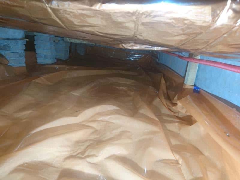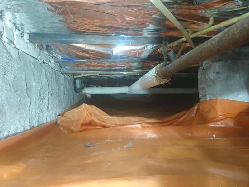 Dit is belangrijk omdat we regelmatig zien dat er vocht uit de bodem van de kruipruimte omhoogkomt. Wanneer we de bodemfolie machinaal bevestigen, met opstaande rand, zal het water altijd onder de bodemfolie blijven. Hierdoor blijft de kruipruimte droog.