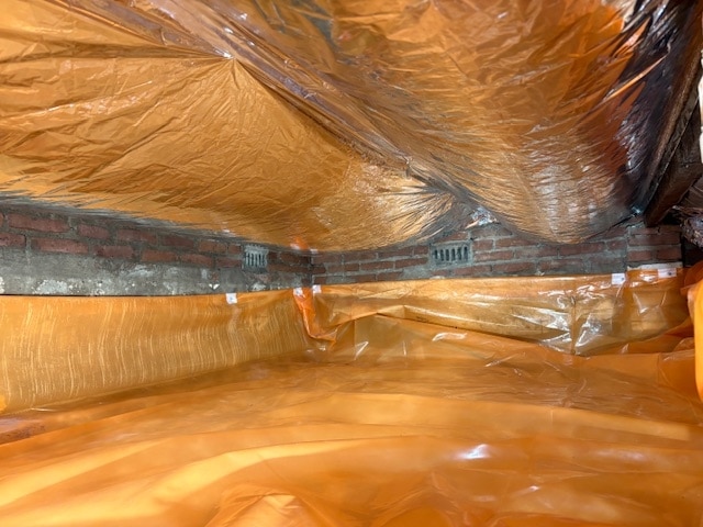 Kruipruimte isolatie met bodemfolie en thermokussens