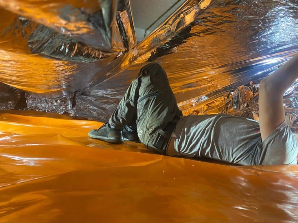 Ventilatievoorzieningen: Nee | Wateroverlast: Soms | Leidingen: Niet hinderlijk | Soort bodem: Klei | Soort vloer: Piepschuim | Kwaliteit beton: Goed | Isolatie aanwezig: Nee | Doorgang aanwezig: Nee | Puin aanwezig: Nee | Onderkant vloer droog: Nee | Houtwormen: Nee | Uitvoering: Gemiddeld | Vloer tussen/dwars: Nvt | Graven: nvt | Uur: Nee | Aantal personen: Nee | Beschrijving: Nee | Uur: Nee | Aantal personen: Nee | Beschrijving: Nee TONZON vloerisolatie kent een tweeledige aanpak. Bij deze klant uit Delft hebben we bodemfolie en thermokussens aangebracht. De bodemfolie werd over de gehele vloer aangebracht met een hoog opstaande rand tegen de muren in de kruipruimte. De bodemfolie werd machinaal bevestigd, zodat we zeker weten dat de folie vastzit. Hierdoor krijgt optrekkend vocht vanuit de bodem geen kans meer. Naast bodemfolie hebben we ook thermokussens gebruikt om de isolatie van de kruipruimte zo maximaal mogelijk te maken. Thermokussens worden in de vorm van luchtzakken tegen de onderzijde van de vloer aangebracht. De luchtzakken zorgen ervoor dat warme lucht die door de vloer naar beneden komt, teruggekaatst wordt naar boven. Hierdoor blijft de vloer beter op temperatuur, waardoor er minder warmteverlies ontstaat en de stookkosten dalen.