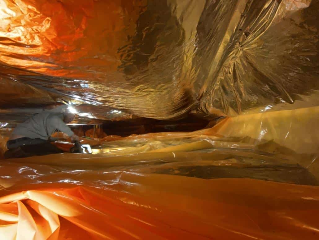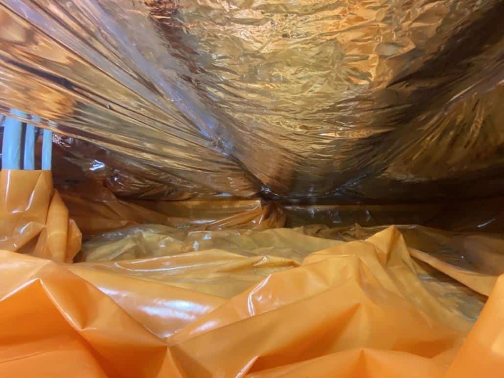 Ventilatievoorzieningen: Nee | Wateroverlast: Altijd | Leidingen: Hinderlijk | Soort bodem: Klei | Soort vloer: Piepschuim | Kwaliteit beton: Goed | Isolatie aanwezig: Nee | Doorgang aanwezig: Nee | Puin aanwezig: Nee | Onderkant vloer droog: Nee | Houtwormen: Nee | Uitvoering: Lastig | Vloer tussen/dwars: Nvt | Graven: nvt | Uur: Nee | Aantal personen: Nee | Beschrijving: Nee | Uur: Nee | Aantal personen: Nee | Beschrijving: Nee TONZON vloerisolatie kent een tweeledige aanpak. Bij deze klant uit Zevenbergen hebben we bodemfolie en thermokussens aangebracht. De bodemfolie werd over de gehele vloer aangebracht met een hoog opstaande rand tegen de muren in de kruipruimte. De bodemfolie werd machinaal bevestigd, zodat we zeker weten dat de folie vastzit. Hierdoor krijgt optrekkend vocht vanuit de bodem geen kans meer. Naast bodemfolie hebben we ook thermokussens gebruikt om de isolatie van de kruipruimte zo maximaal mogelijk te maken. Thermokussens worden in de vorm van luchtzakken tegen de onderzijde van de vloer aangebracht. De luchtzakken zorgen ervoor dat warme lucht die door de vloer naar beneden komt, teruggekaatst wordt naar boven. Hierdoor blijft de vloer beter op temperatuur, waardoor er minder warmteverlies ontstaat en de stookkosten dalen.