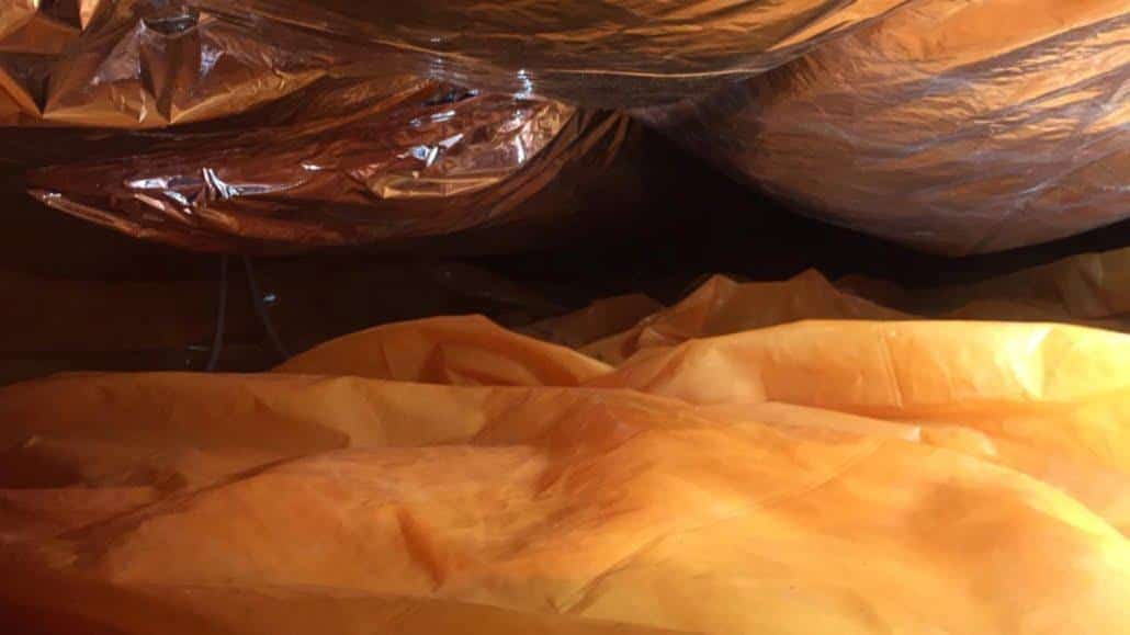 TONZON vloerisolatie kent een tweeledige aanpak. Na de bodemfolie te hebben aangebracht kon de vloer worden aangepakt. Hiervoor maakten we gebruik van de zogenoemde thermokussens. Deze folie wordt in de vorm van luchtzakken tegen de onderzijde van de vloer aangebracht. De luchtzakken zorgen ervoor dat warme lucht die door de vloer naar beneden komt teruggekaatst wordt naar boven. Hierdoor blijft de vloer beter op temperatuur, waardoor minder warmte verlies en dus lagere stookkosten. Daarmee hebben we het probleem van de koude vloer aangepakt!