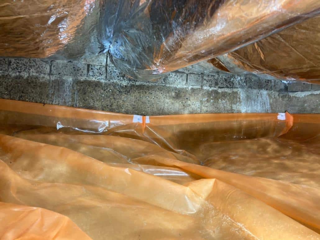 Kruipruimte isolatie met bodemfolie en thermokussens