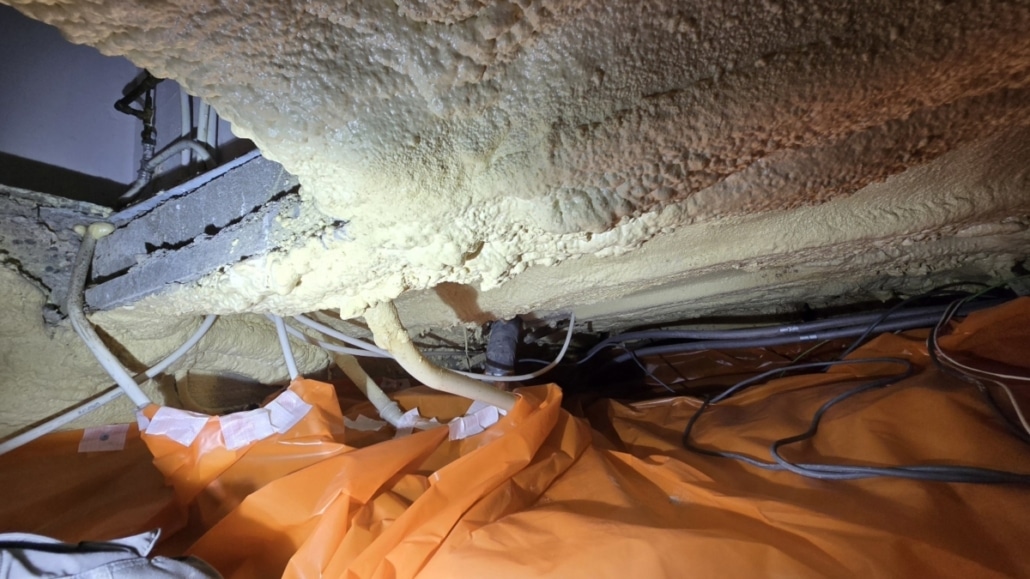 Ventilatievoorzieningen: Nee | Wateroverlast: Nooit | Leidingen: Hinderlijk | Soort bodem: Zand | Soort vloer: Pur | Kwaliteit beton: Goed | Isolatie aanwezig: Nee | Doorgang aanwezig: Nee | Puin aanwezig: Nee | Onderkant vloer droog: Nee | Houtwormen: Nee | Uitvoering: Gemiddeld | Vloer tussen/dwars: Nvt | Graven: nvt | Uur: Nee | Aantal personen: Nee | Beschrijving: Nee In deze kruipruimte was de onderkant van de vloer niet droog. Als de onderkant van de vloer in de kruipruimte vochtig is, brengen we als eerst TONZON bodemfolie aan. Met bodemfolie kan de vloer goed indrogen. Toen de vloer in deze kruipruimte droog genoeg was, konden we beginnen met het isoleren van de kruipruimte. We hebben deze bewoners aangeraden om naast kruipruimte isolatie ook ventilatie toe te passen. Zoals ze nu hebben gezien, is de kans op vocht in hun kruipruimte groot. Dit voorkom je in de toekomst met voldoende kruipruimte ventilatie. Alles in deze ruimte moet in de juiste verhouding zijn, om een zo optimaal mogelijk rendement te bereiken.