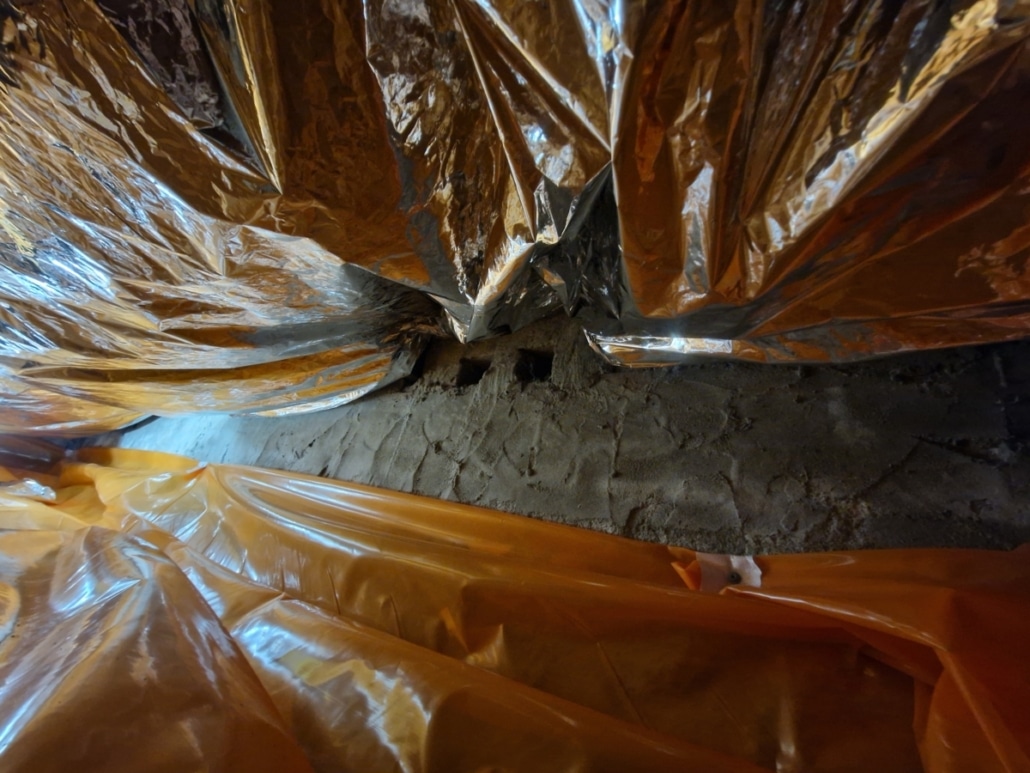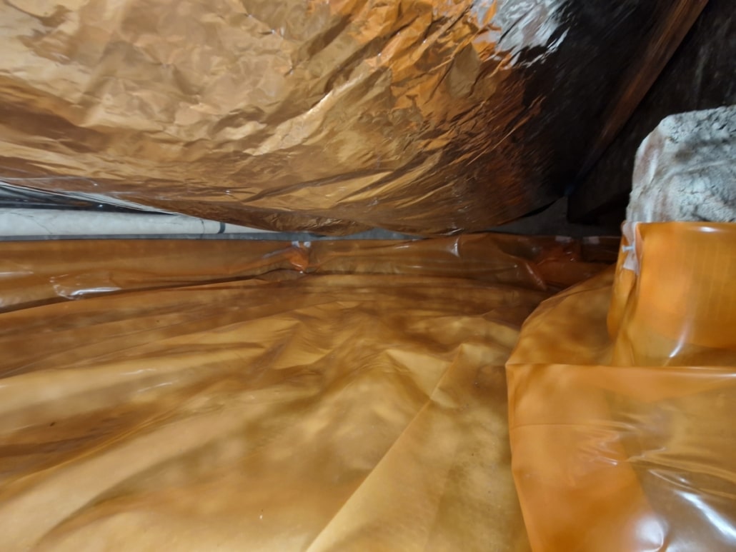 Kruipruimte isolatie met bodemfolie en thermokussens