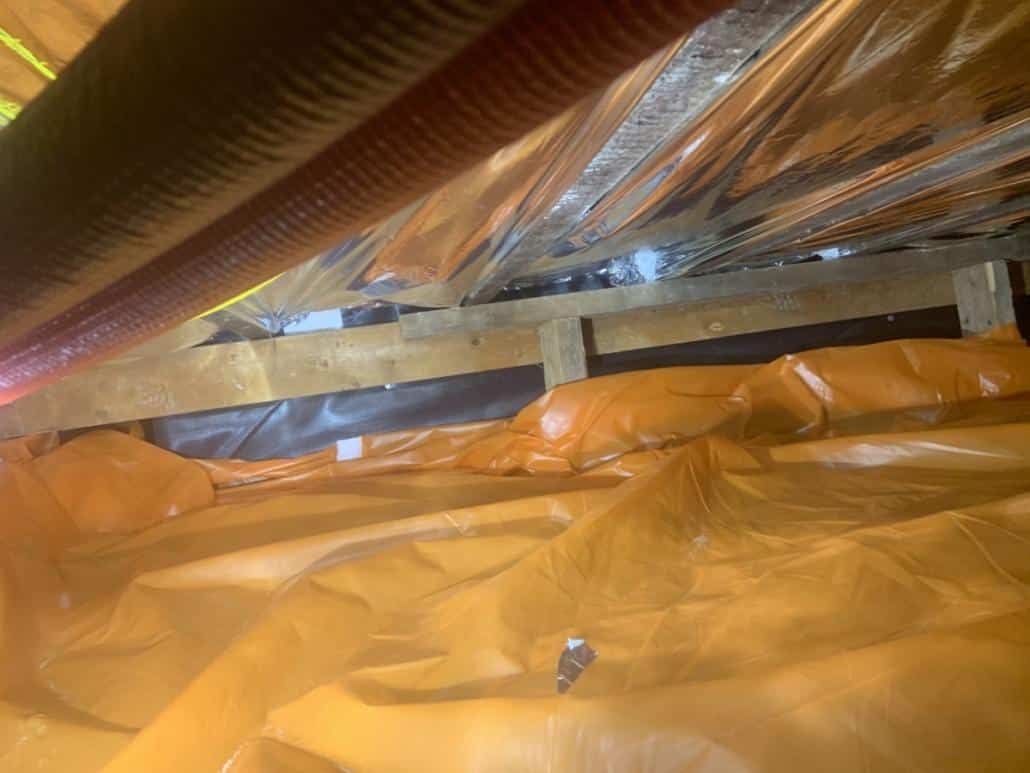 Kruipruimte isolatie met bodemfolie en thermokussens