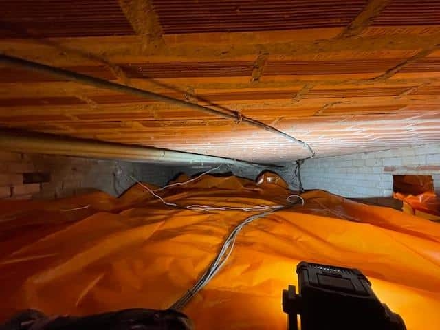 Kruipruimte isolatie met bodemfolie en thermokussens