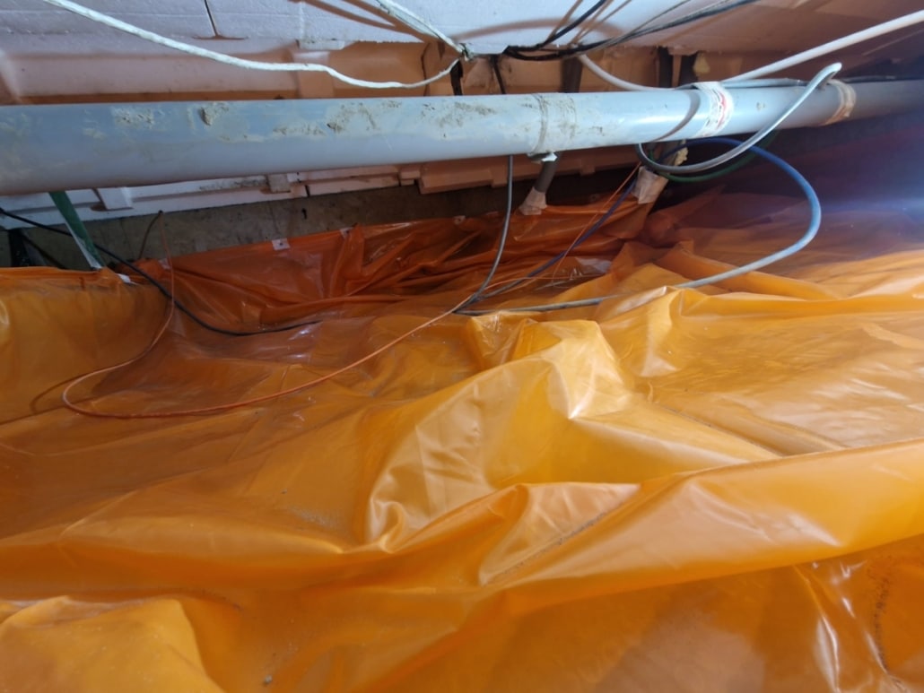 Kruipruimte isolatie met bodemfolie en thermokussens