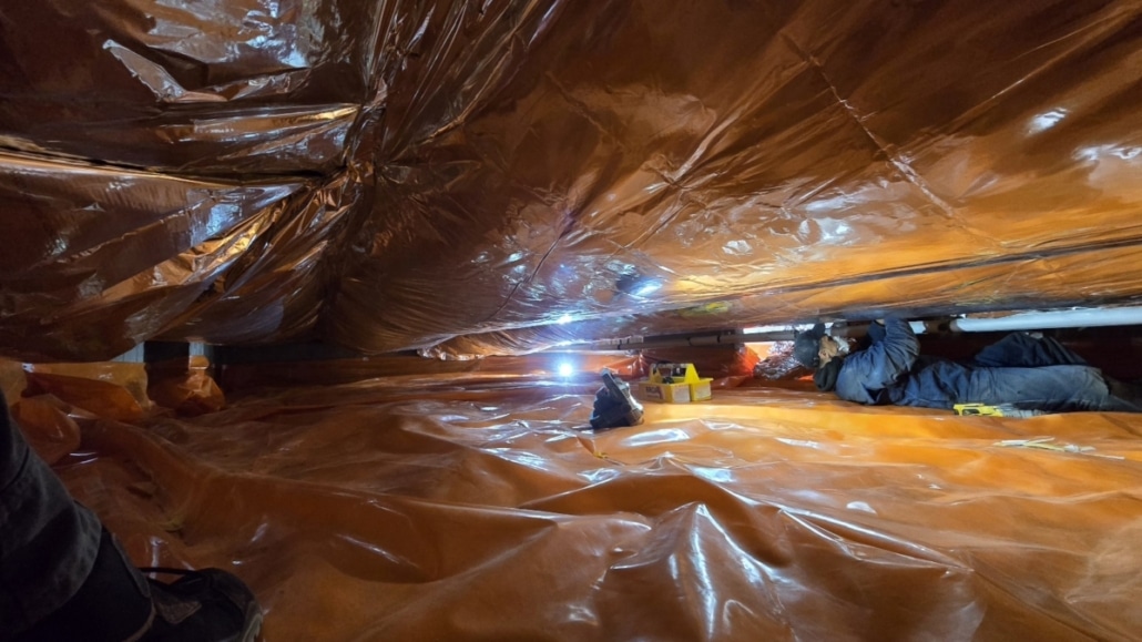 De leidingen in de kruipruimte van deze bewoners waren niet hinderlijk. Hierdoor konden we overal goed bij en snel van start gaan. Het komt wel eens voor dat leidingwerk in de kruipruimte in de weg zit. Dit is vooral het probleem wanneer de kruipruimte erg klein is en al het leidingwerk via de kruipruimte loopt en bijvoorbeeld niet via het plafond.