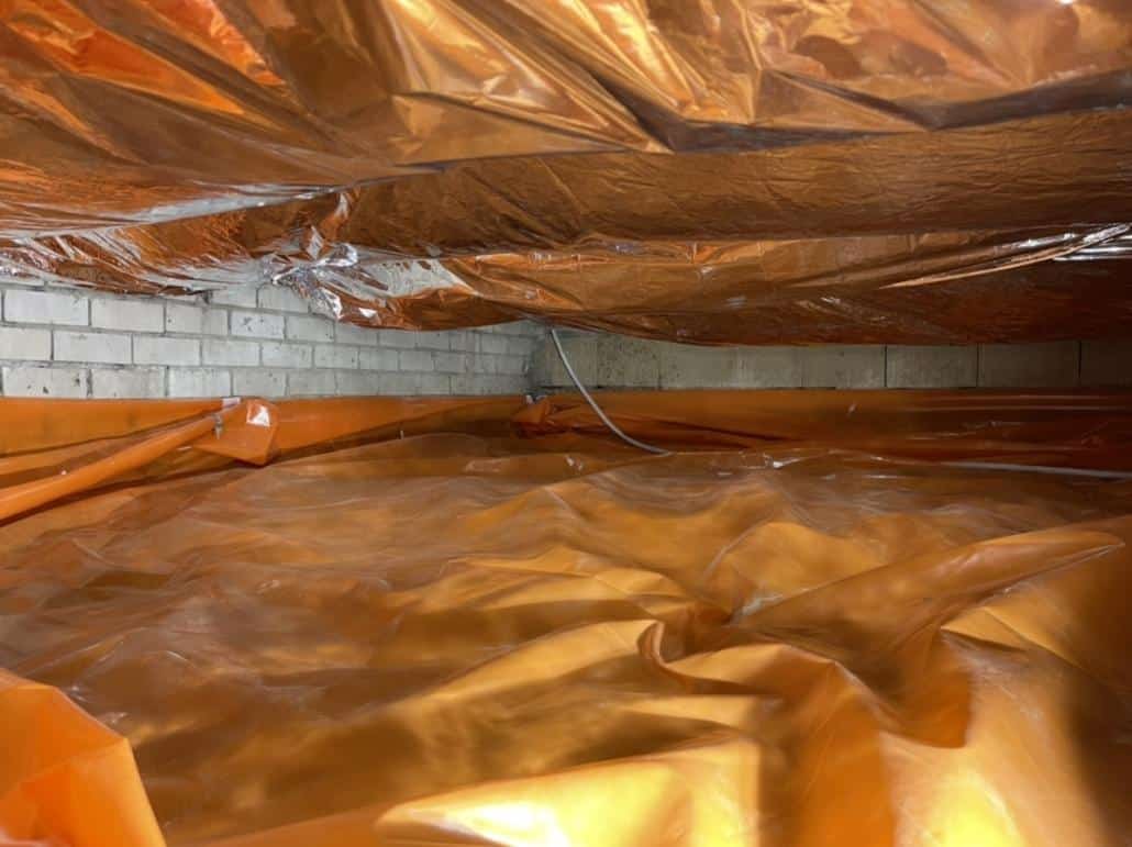 Deze bewoners hebben een betonnen broodjesvloer in hun woning. Vaak zien wij dat veel niet-geïsoleerde betonnen broodjesvloeren vochtig zijn. Vooral als de vloerbekleding aan de bovenzijde niet doorlatende vloerbedekking, zeil of een dichte ondergrond kent, zoals bij laminaat of andere afdekking. Hierdoor kan betonrot versneld optreden en op langere termijn voor vervelende consequenties zorgen. Voor het drogen van de kruipruimte brengen we de TONZON bodemfolie aan, zodat de vloer goed kan indrogen.