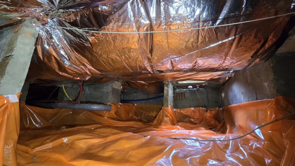 Kruipruimte isolatie met bodemfolie en thermokussens