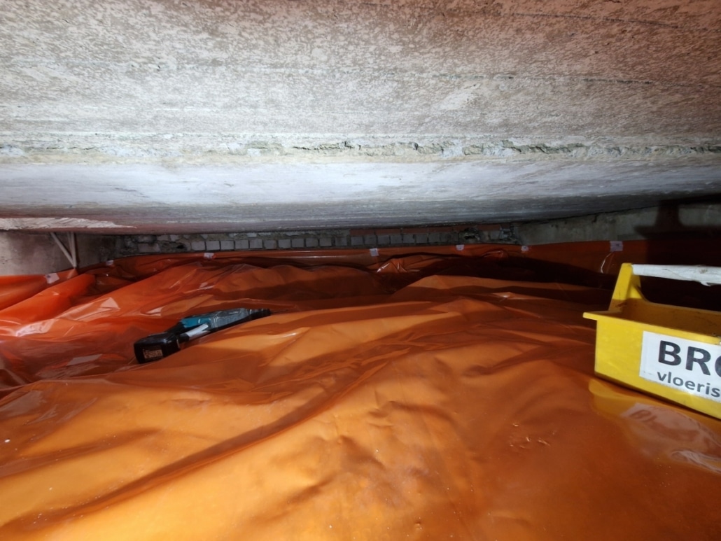 Ventilatievoorzieningen: Nee | Wateroverlast: Nooit | Leidingen: Hinderlijk | Soort bodem: Zand | Soort vloer: Beton | Kwaliteit beton: Goed | Isolatie aanwezig: Nee | Doorgang aanwezig: Nee | Puin aanwezig: Nee | Onderkant vloer droog: Nee | Houtwormen: Nee | Uitvoering: Gemiddeld | Vloer tussen/dwars: Nvt | Graven: nvt | Uur: Nee | Aantal personen: Nee | Beschrijving: Nee Onze specialisten werken met TONZON vloerisolatie om de kruipruimte zo maximaal mogelijk te isoleren. TONZON heeft een tweeledige aanpak. We isoleren de bodem van de kruipruimte en pakken de onderkant van de vloer aan. In Breda hebben we als eerst een laag noppenfolie op de bodem aangebracht om optrekkend vocht tegen te gaan. Daarna hebben we de bodem met bodemfolie aangepakt en de onderkant van de vloer met thermokussens.