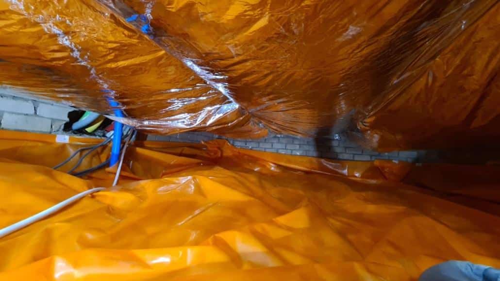 Onze specialisten werken met TONZON vloerisolatie om de kruipruimte zo maximaal mogelijk te isoleren. TONZON heeft een tweeledige aanpak. We isoleren de bodem van de kruipruimte en pakken de onderkant van de vloer aan. In Den Bosch hebben we als eerst een laag noppenfolie op de bodem aangebracht om optrekkend vocht tegen te gaan. Daarna hebben we de bodem met bodemfolie aangepakt en de onderkant van de vloer met thermokussens.