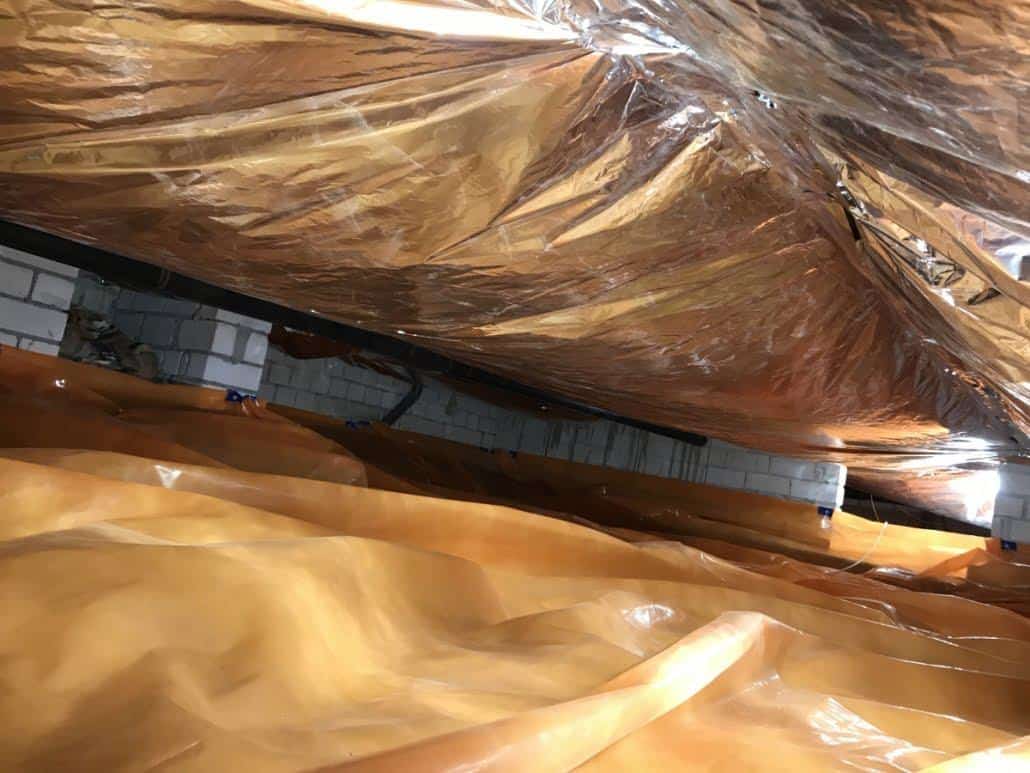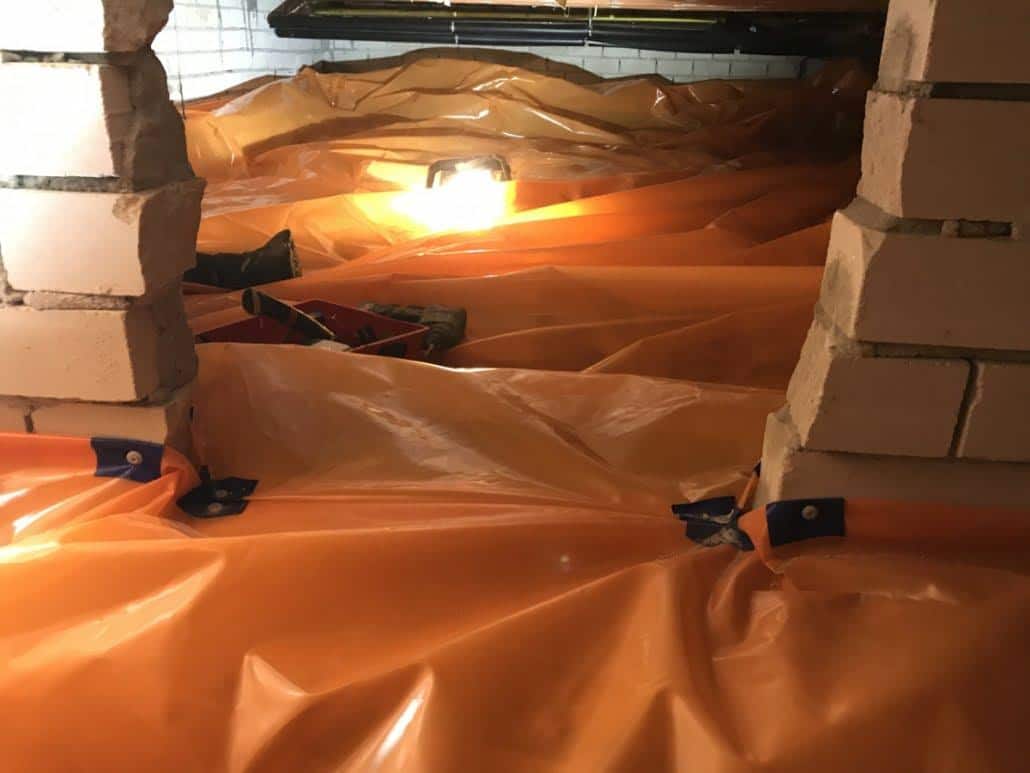 Kruipruimte isolatie met bodemfolie en thermokussens