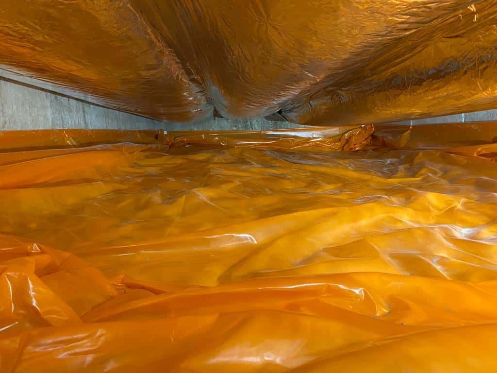 Deze bewoners hebben een betonnen broodjesvloer in hun woning. Vaak zien wij dat veel niet-geïsoleerde betonnen broodjesvloeren vochtig zijn. Vooral als de vloerbekleding aan de bovenzijde niet doorlatende vloerbedekking, zeil of een dichte ondergrond kent, zoals bij laminaat of andere afdekking. Hierdoor kan betonrot versneld optreden en op langere termijn voor vervelende consequenties zorgen. Voor het drogen van de kruipruimte brengen we de TONZON bodemfolie aan, zodat de vloer goed kan indrogen.