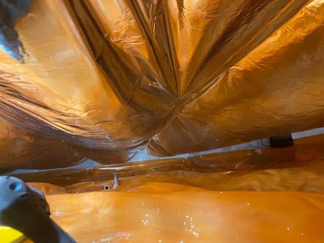 Ventilatievoorzieningen: Nee | Wateroverlast: Nooit | Leidingen: Hinderlijk | Soort bodem: Zand | Soort vloer: Piepschuim | Kwaliteit beton: Goed | Isolatie aanwezig: Nee | Doorgang aanwezig: Nee | Puin aanwezig: Nee | Onderkant vloer droog: Nee | Houtwormen: Nee | Uitvoering: Lastig | Vloer tussen/dwars: Nvt | Graven: nvt | Uur: Nee | Aantal personen: Nee | Beschrijving: Nee | Uur: Nee | Aantal personen: Nee | Beschrijving: Nee In deze kruipruimte was de onderkant van de vloer niet droog. Als de onderkant van de vloer in de kruipruimte vochtig is, brengen we als eerst TONZON bodemfolie aan. Met bodemfolie kan de vloer goed indrogen. Toen de vloer in deze kruipruimte droog genoeg was, konden we beginnen met het isoleren van de kruipruimte. We hebben deze bewoners aangeraden om naast kruipruimte isolatie ook ventilatie toe te passen. Zoals ze nu hebben gezien, is de kans op vocht in hun kruipruimte groot. Dit voorkom je in de toekomst met voldoende kruipruimte ventilatie. Alles in deze ruimte moet in de juiste verhouding zijn, om een zo optimaal mogelijk rendement te bereiken.