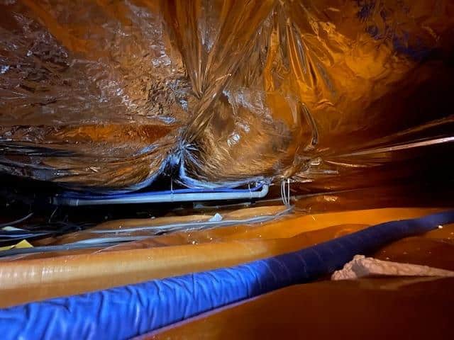 Een kruipruimte inspectie wijst uit welke aanpak de kruipruimte nodig heeft. Deze inspectie gaat gepaard met een warmtebeeldcamera, deze camera kan precies zien hoeveel en hoe ernstig de waterschade is. Na de inspectie bleek dat de kruipruimte toe was aan isolatie. De waterschade had nog geen zichtbare schade aangericht binnen in de woning, maar dit was slechts een kwestie van tijd voordat het zou gebeuren.
