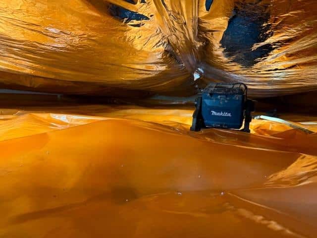 Om de kruipruimte te bereiken moet er een doorgang zijn. In sommige gevallen is de woning niet voorzien van een doorgang naar de kruipruimte. Gelukkig was dat bij deze bewoners wel het geval en konden we snel en makkelijk het probleem in de kruipruimte constateren.