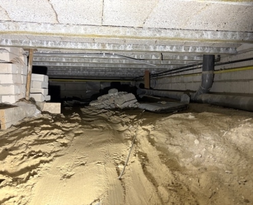 Om een probleem op te lossen, moeten we beginnen bij de oorzaak. Om de oorzaak van het vochtprobleem te achterhalen, zijn we met een warmtebeeldcamera de kruipruimte ingegaan. Met de warmtebeeldcamera zagen we direct waar het vocht vandaan kwam.