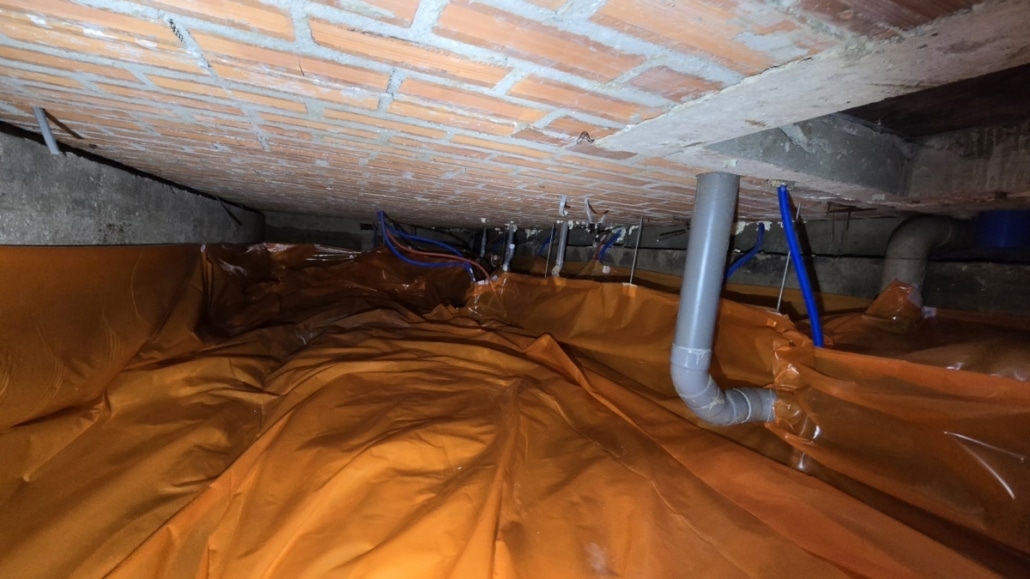 Kruipruimte isolatie met bodemfolie en thermokussens