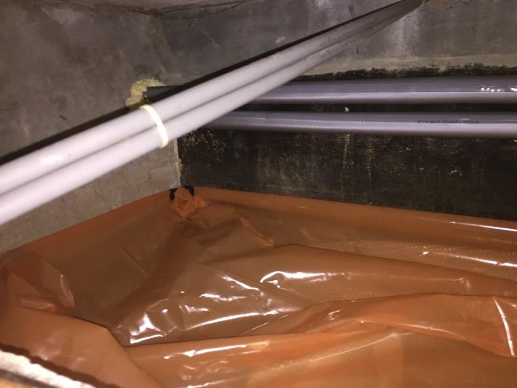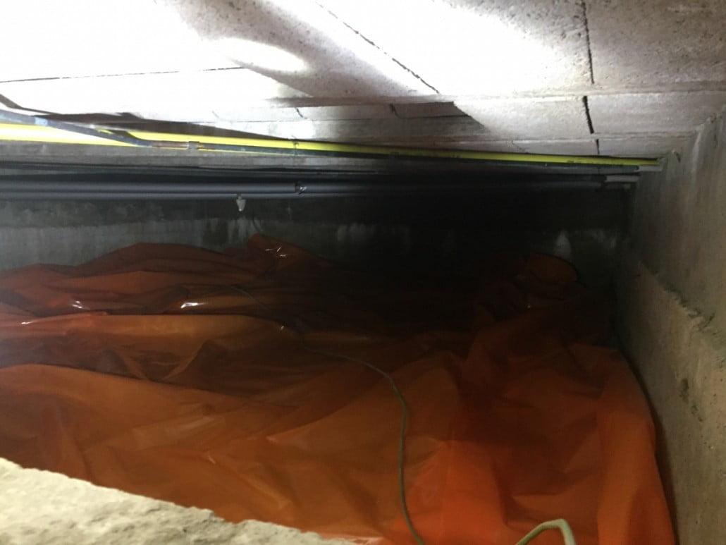 In de eerste fase hebben we voor het optrekkend vocht, dat uit de bodem komt, een laag noppenfolie aangebracht. De tweede fase van deze aanpak bestond uit het aanbrengen van TONZON bodemfolie. De folie werd over de gehele vloer aangebracht met een hoog opstaande rand tegen de muren. De rand werd machinaal bevestigd, zodat we zeker weten dat de folie goed vastzit. Zo krijgt optrekkend vocht vanuit de bodem geen kans meer.