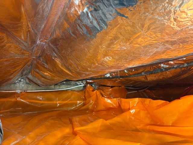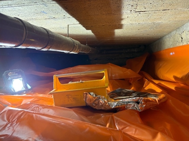 Deze bewoners hebben een betonnen broodjesvloer in hun woning. Vaak zien wij dat veel niet-geïsoleerde betonnen broodjesvloeren vochtig zijn. Vooral als de vloerbekleding aan de bovenzijde niet doorlatende vloerbedekking, zeil of een dichte ondergrond kent, zoals bij laminaat of andere afdekking. Hierdoor kan betonrot versneld optreden en op langere termijn voor vervelende consequenties zorgen. Voor het drogen van de kruipruimte brengen we de TONZON bodemfolie aan, zodat de vloer goed kan indrogen.