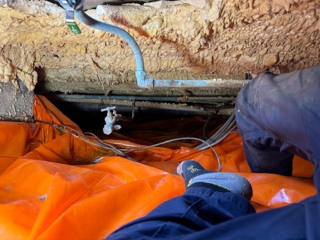 Om een probleem op te lossen, moeten we beginnen bij de oorzaak. Om de oorzaak van het vochtprobleem te achterhalen, zijn we met een warmtebeeldcamera de kruipruimte ingegaan. Met de warmtebeeldcamera zagen we direct waar het vocht vandaan kwam.